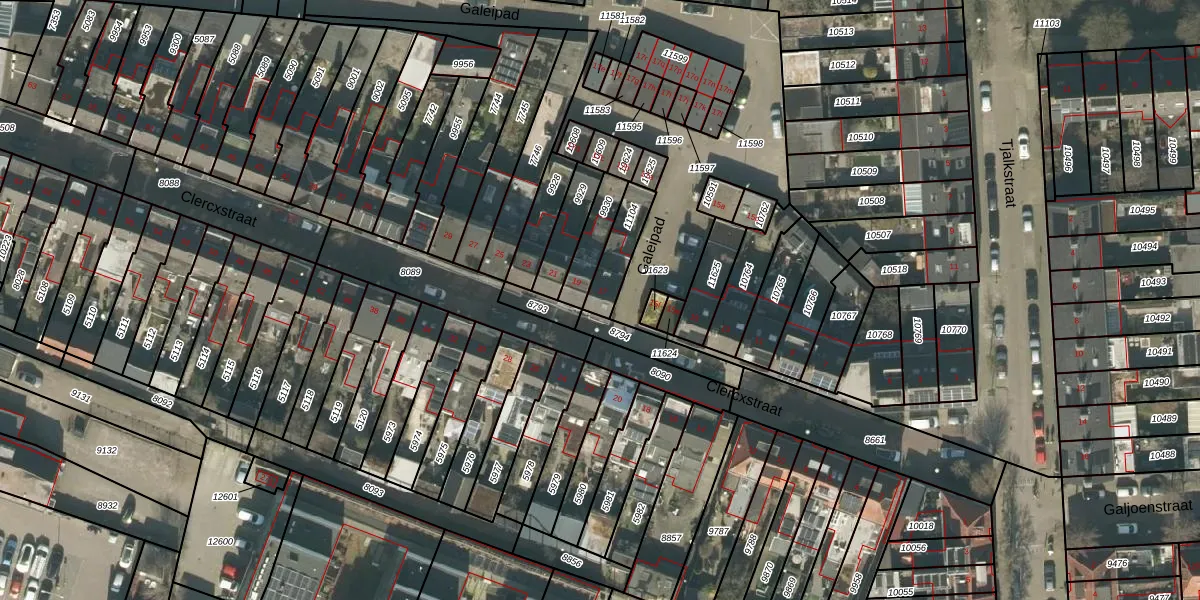 Het perceel waarop Clercxstraat 17 staat heeft een oppervlakte van 109 m². Dit is een middelgroot perceel. De perceeloppervlakte wordt geregistreerd door het Kadaster. Gedetailleerde informatie over de maten van dit perceel kunt u vinden in het rapport Kadastrale kaart met maatvoering van Clercxstraat 17.