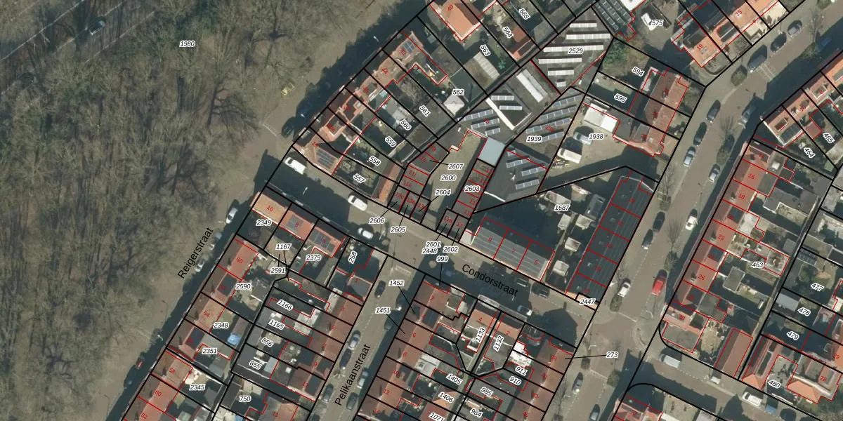 Het perceel waarop Condorstraat 13-a staat heeft een oppervlakte van 19 m². Dit is een klein perceel. De perceeloppervlakte wordt geregistreerd door het Kadaster. Gedetailleerde informatie over de maten van dit perceel kunt u vinden in het rapport Kadastrale kaart met maatvoering van Condorstraat 13-a.