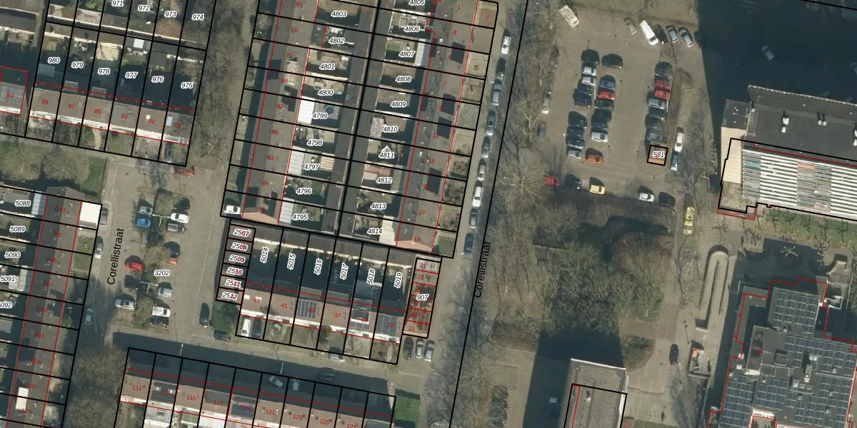 Het perceel waarop Corellistraat 17 staat heeft een oppervlakte van 165 m². Dit is een middelgroot perceel. De perceeloppervlakte wordt geregistreerd door het Kadaster. Gedetailleerde informatie over de maten van dit perceel kunt u vinden in het rapport Kadastrale kaart met maatvoering van Corellistraat 17.