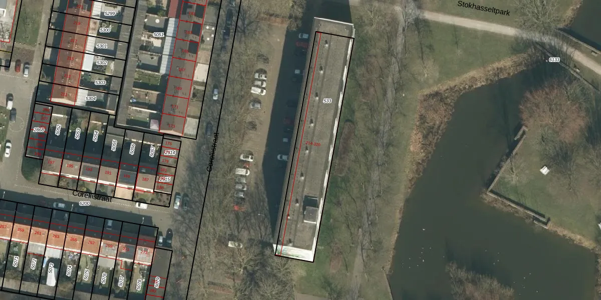 Corellistraat 214 is gelegen op kadastraal perceel TBG01S533. Deze kadastrale aanduiding is uniek en wordt gebruikt door het Kadaster om eigendomsrechten en andere zakelijke rechten vast te leggen. Het perceel maakt onderdeel uit van de kadastrale gemeente Tilburg.