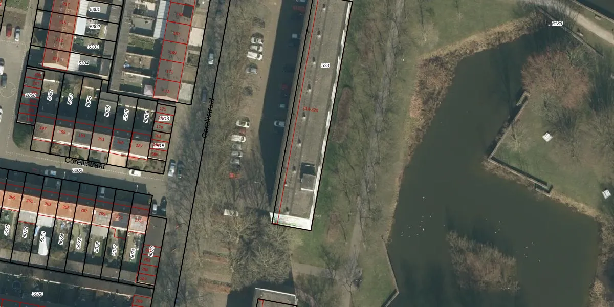 Corellistraat 262 is gelegen op kadastraal perceel TBG01S533. Deze kadastrale aanduiding is uniek en wordt gebruikt door het Kadaster om eigendomsrechten en andere zakelijke rechten vast te leggen. Het perceel maakt onderdeel uit van de kadastrale gemeente Tilburg.