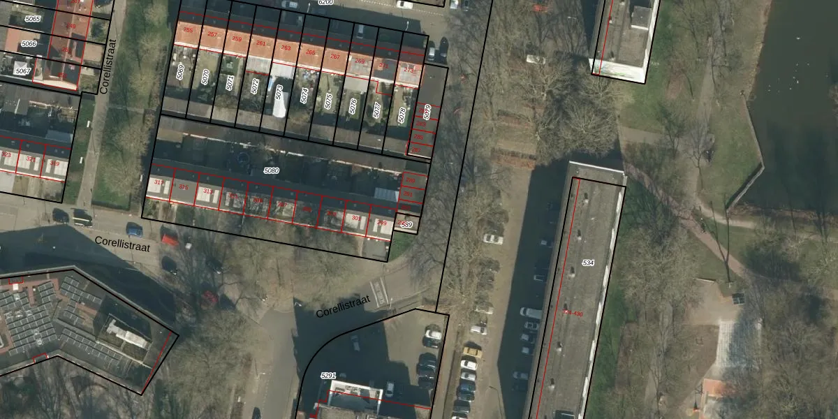 Corellistraat 293 is gelegen op kadastraal perceel TBG01S5080. Deze kadastrale aanduiding is uniek en wordt gebruikt door het Kadaster om eigendomsrechten en andere zakelijke rechten vast te leggen. Het perceel maakt onderdeel uit van de kadastrale gemeente Tilburg.