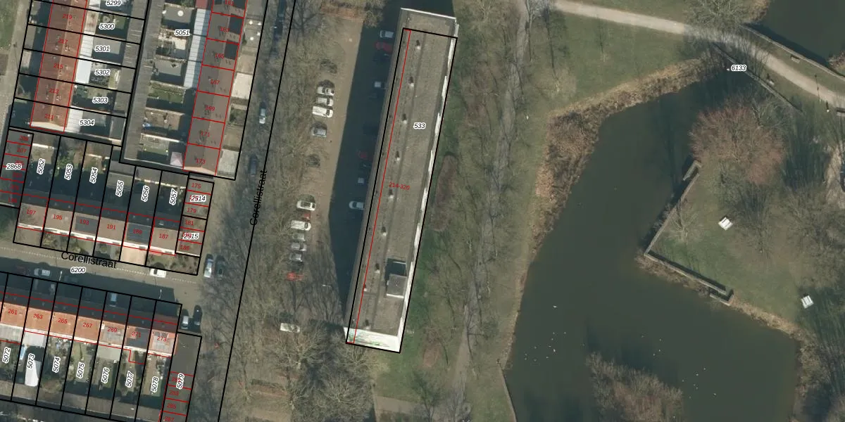 Corellistraat 312 is gelegen op kadastraal perceel TBG01S533. Deze kadastrale aanduiding is uniek en wordt gebruikt door het Kadaster om eigendomsrechten en andere zakelijke rechten vast te leggen. Het perceel maakt onderdeel uit van de kadastrale gemeente Tilburg.