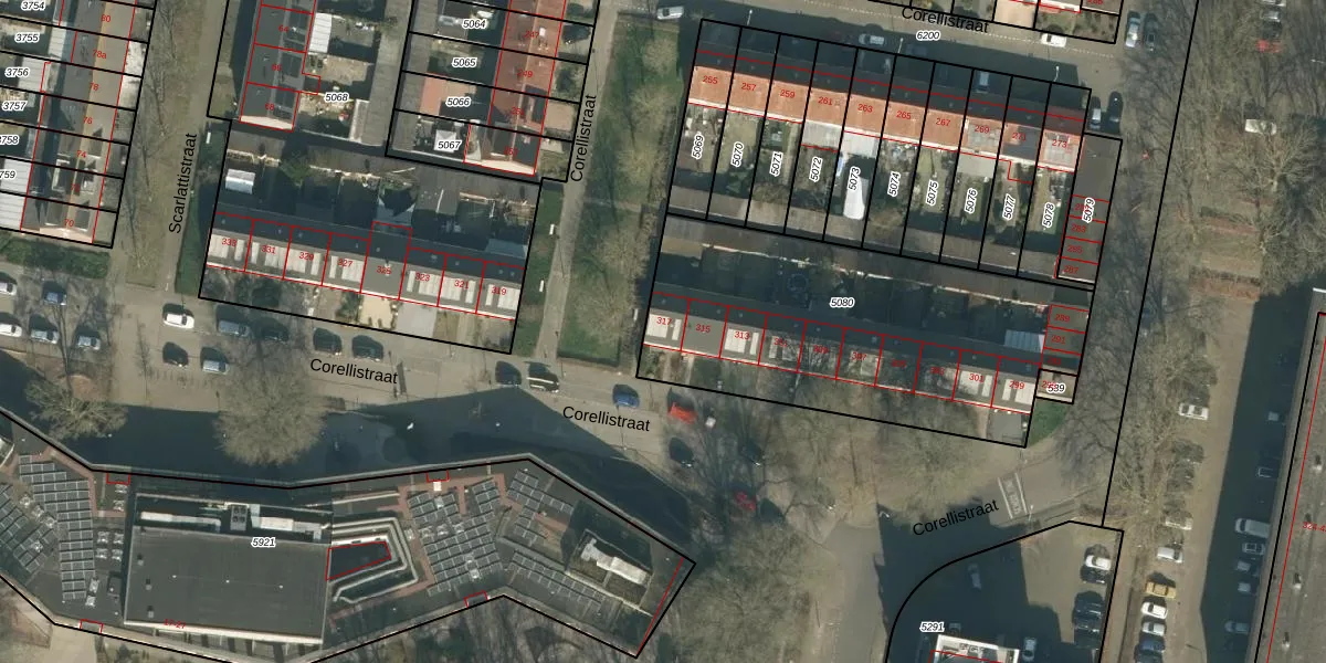 Corellistraat 317 is gelegen op kadastraal perceel TBG01S5080. Deze kadastrale aanduiding is uniek en wordt gebruikt door het Kadaster om eigendomsrechten en andere zakelijke rechten vast te leggen. Het perceel maakt onderdeel uit van de kadastrale gemeente Tilburg.