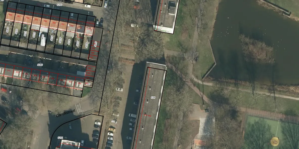 Het perceel waarop Corellistraat 334 staat heeft een oppervlakte van 978 m². Dit is een groot perceel. De perceeloppervlakte wordt geregistreerd door het Kadaster. Gedetailleerde informatie over de maten van dit perceel kunt u vinden in het rapport Kadastrale kaart met maatvoering van Corellistraat 334.