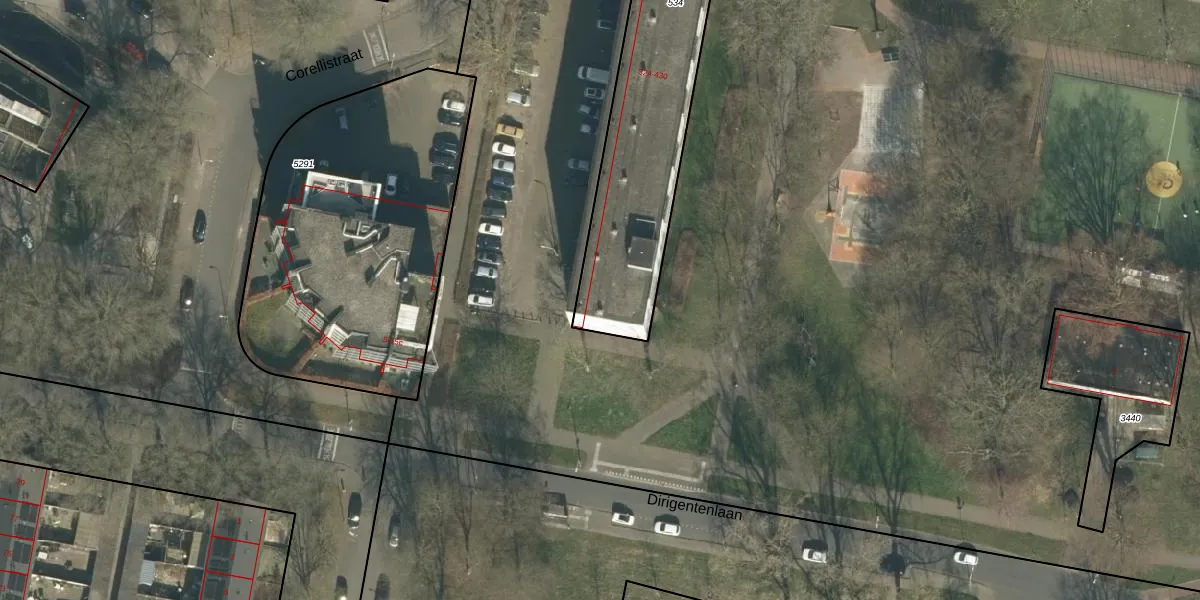 Het perceel waarop Corellistraat 336 staat heeft een oppervlakte van 978 m². Dit is een groot perceel. De perceeloppervlakte wordt geregistreerd door het Kadaster. Gedetailleerde informatie over de maten van dit perceel kunt u vinden in het rapport Kadastrale kaart met maatvoering van Corellistraat 336.