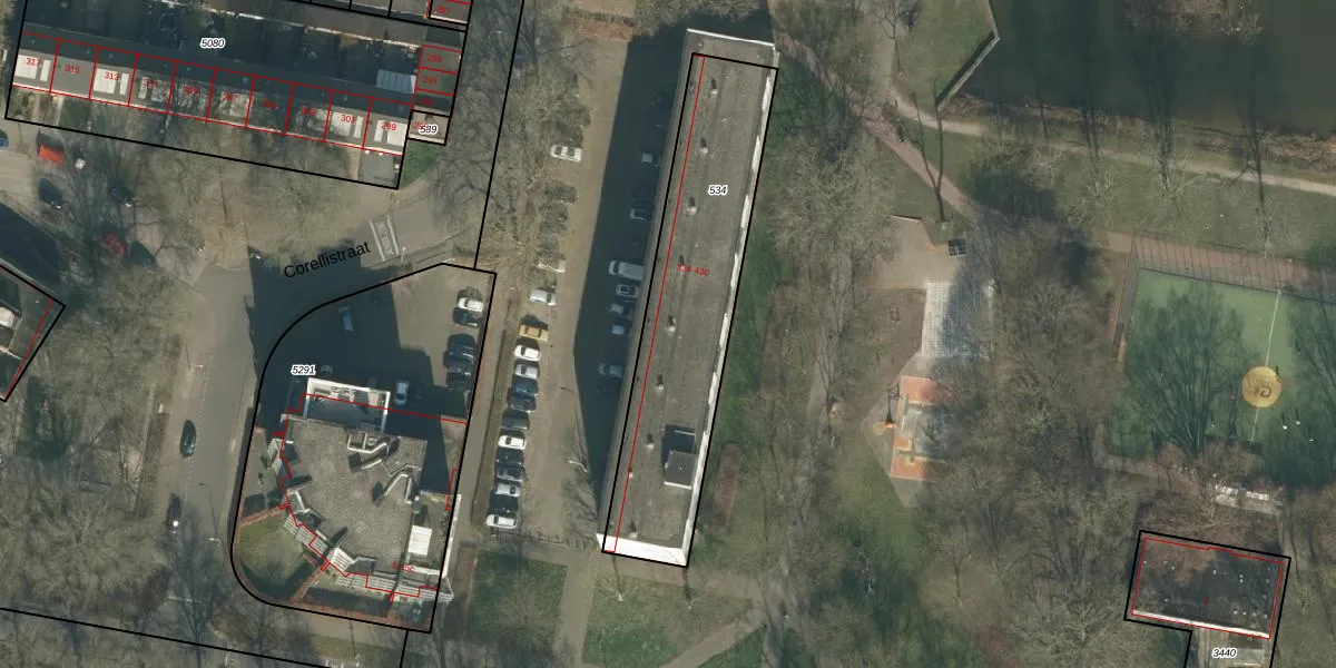 Het perceel waarop Corellistraat 342 staat heeft een oppervlakte van 978 m². Dit is een groot perceel. De perceeloppervlakte wordt geregistreerd door het Kadaster. Gedetailleerde informatie over de maten van dit perceel kunt u vinden in het rapport Kadastrale kaart met maatvoering van Corellistraat 342.