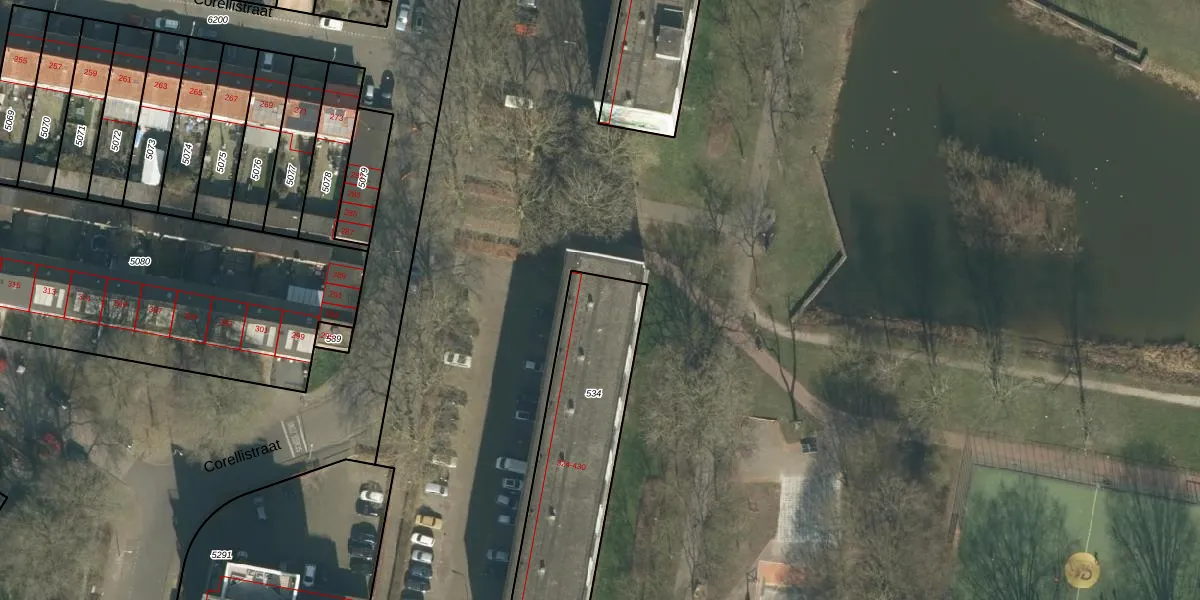 Het perceel waarop Corellistraat 366 staat heeft een oppervlakte van 978 m². Dit is een groot perceel. De perceeloppervlakte wordt geregistreerd door het Kadaster. Gedetailleerde informatie over de maten van dit perceel kunt u vinden in het rapport Kadastrale kaart met maatvoering van Corellistraat 366.