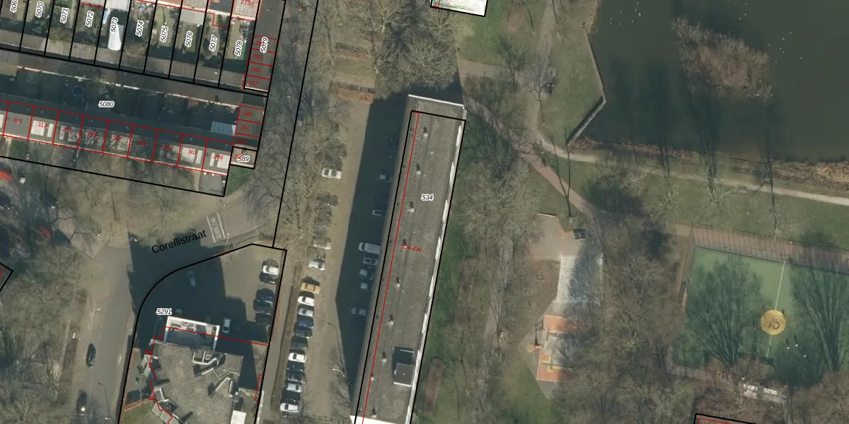 Het perceel waarop Corellistraat 378 staat heeft een oppervlakte van 978 m². Dit is een groot perceel. De perceeloppervlakte wordt geregistreerd door het Kadaster. Gedetailleerde informatie over de maten van dit perceel kunt u vinden in het rapport Kadastrale kaart met maatvoering van Corellistraat 378.