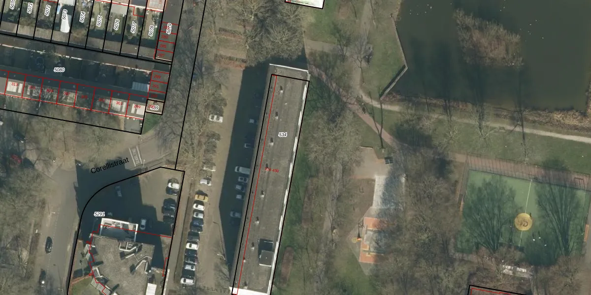 Het perceel waarop Corellistraat 426 staat heeft een oppervlakte van 978 m². Dit is een groot perceel. De perceeloppervlakte wordt geregistreerd door het Kadaster. Gedetailleerde informatie over de maten van dit perceel kunt u vinden in het rapport Kadastrale kaart met maatvoering van Corellistraat 426.