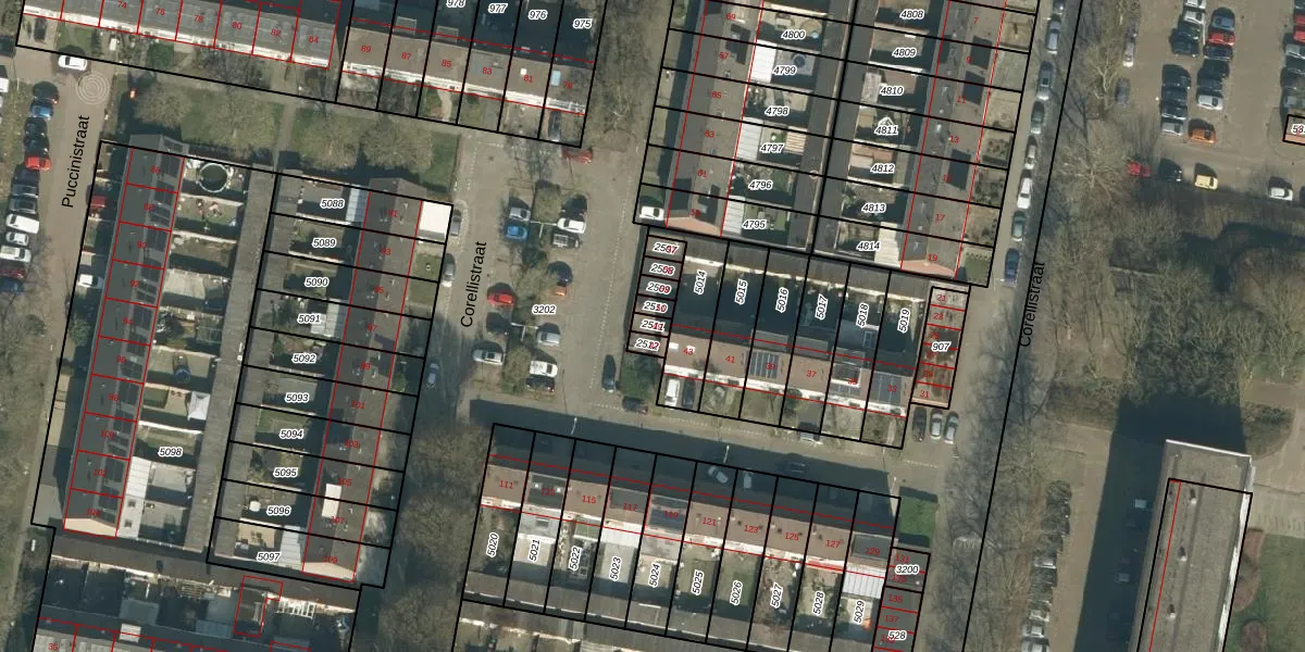 Het perceel waarop Corellistraat 49 staat heeft een oppervlakte van 18 m². Dit is een klein perceel. De perceeloppervlakte wordt geregistreerd door het Kadaster. Gedetailleerde informatie over de maten van dit perceel kunt u vinden in het rapport Kadastrale kaart met maatvoering van Corellistraat 49.