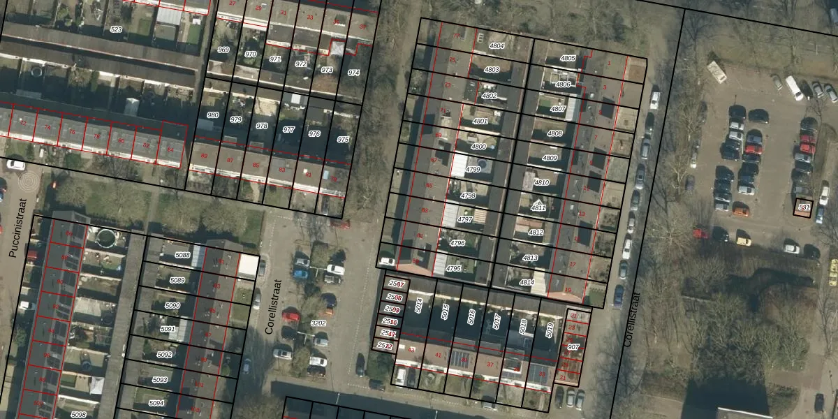 Het perceel waarop Corellistraat 63 staat heeft een oppervlakte van 166 m². Dit is een middelgroot perceel. De perceeloppervlakte wordt geregistreerd door het Kadaster. Gedetailleerde informatie over de maten van dit perceel kunt u vinden in het rapport Kadastrale kaart met maatvoering van Corellistraat 63.
