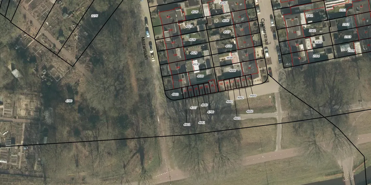 Cramerstraat 43 is gelegen op kadastraal perceel TBG01O4901. Deze kadastrale aanduiding is uniek en wordt gebruikt door het Kadaster om eigendomsrechten en andere zakelijke rechten vast te leggen. Het perceel maakt onderdeel uit van de kadastrale gemeente Tilburg.