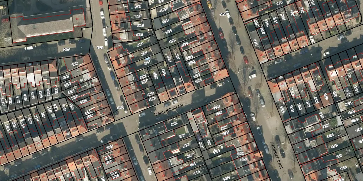 Het perceel waarop Daendelsstraat 37 staat heeft een oppervlakte van 127 m². Dit is een middelgroot perceel. De perceeloppervlakte wordt geregistreerd door het Kadaster. Gedetailleerde informatie over de maten van dit perceel kunt u vinden in het rapport Kadastrale kaart met maatvoering van Daendelsstraat 37.