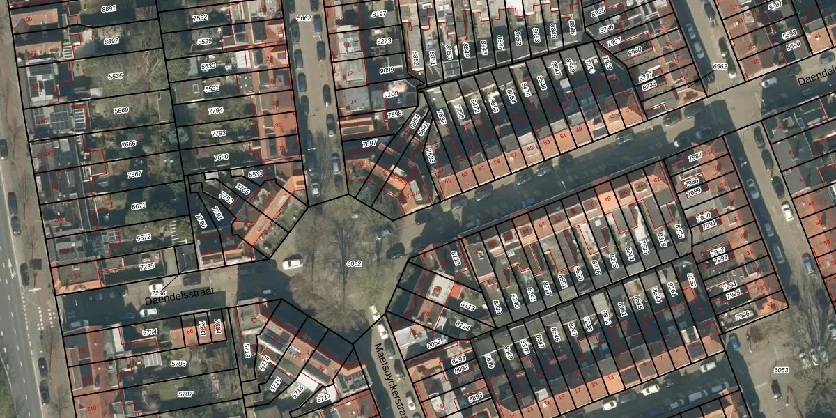Het perceel waarop Daendelsstraat 67 staat heeft een oppervlakte van 195 m². Dit is een middelgroot perceel. De perceeloppervlakte wordt geregistreerd door het Kadaster. Gedetailleerde informatie over de maten van dit perceel kunt u vinden in het rapport Kadastrale kaart met maatvoering van Daendelsstraat 67.