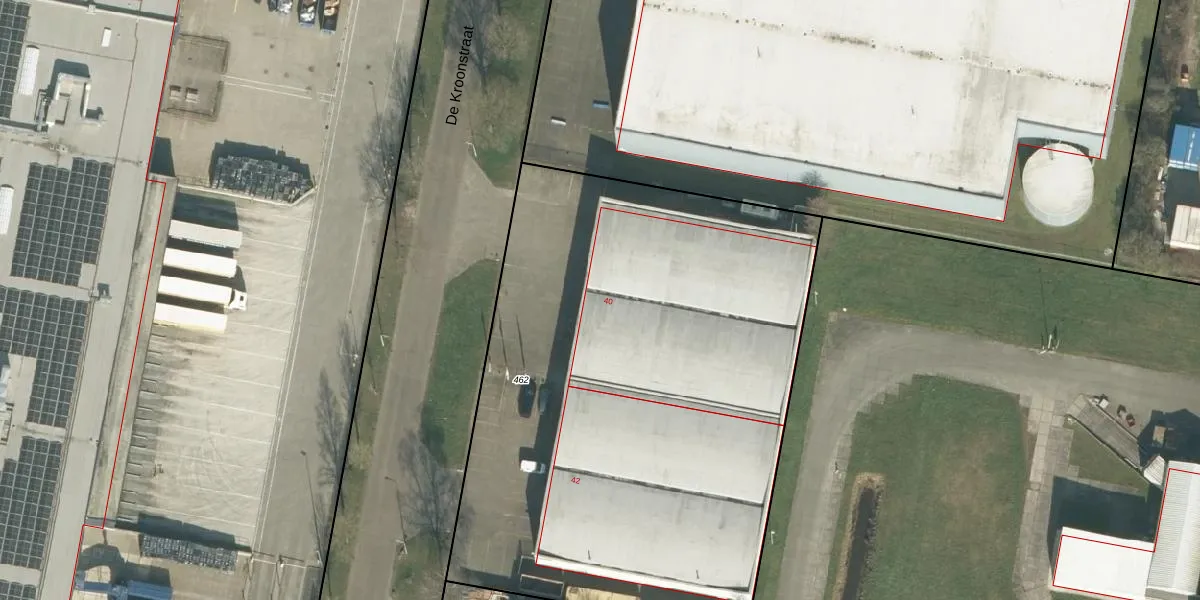 Het perceel waarop De Kroonstraat 40 staat heeft een oppervlakte van 3675 m². Dit is een zeer groot perceel. De perceeloppervlakte wordt geregistreerd door het Kadaster. Gedetailleerde informatie over de maten van dit perceel kunt u vinden in het rapport Kadastrale kaart met maatvoering van De Kroonstraat 40.