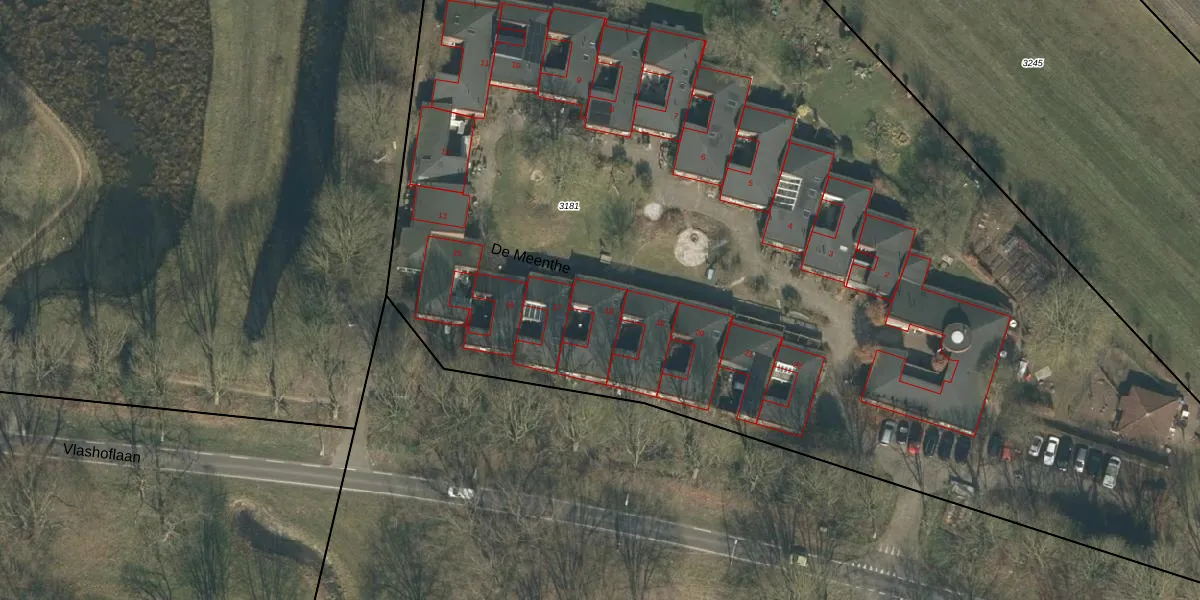 Het perceel waarop De Meenthe 18 staat heeft een oppervlakte van 9694 m². Dit is een zeer groot perceel. De perceeloppervlakte wordt geregistreerd door het Kadaster. Gedetailleerde informatie over de maten van dit perceel kunt u vinden in het rapport Kadastrale kaart met maatvoering van De Meenthe 18.