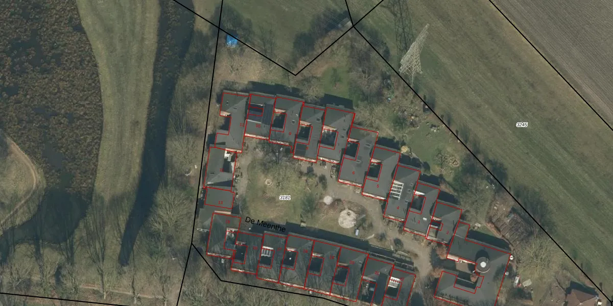 Het perceel waarop De Meenthe 8 staat heeft een oppervlakte van 9694 m². Dit is een zeer groot perceel. De perceeloppervlakte wordt geregistreerd door het Kadaster. Gedetailleerde informatie over de maten van dit perceel kunt u vinden in het rapport Kadastrale kaart met maatvoering van De Meenthe 8.