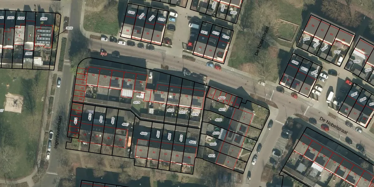 Het perceel waarop De Nobelstraat 78 staat heeft een oppervlakte van 165 m². Dit is een middelgroot perceel. De perceeloppervlakte wordt geregistreerd door het Kadaster. Gedetailleerde informatie over de maten van dit perceel kunt u vinden in het rapport Kadastrale kaart met maatvoering van De Nobelstraat 78.