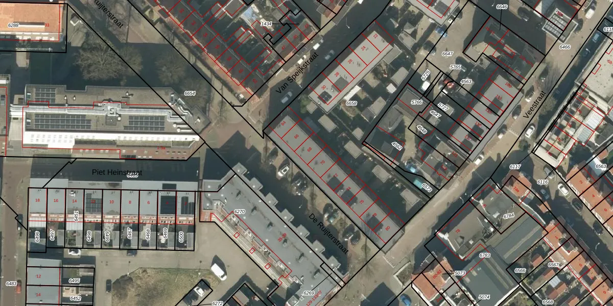 De Ruijterstraat 68 is gelegen op kadastraal perceel TBG01R6658. Deze kadastrale aanduiding is uniek en wordt gebruikt door het Kadaster om eigendomsrechten en andere zakelijke rechten vast te leggen. Het perceel maakt onderdeel uit van de kadastrale gemeente Tilburg.