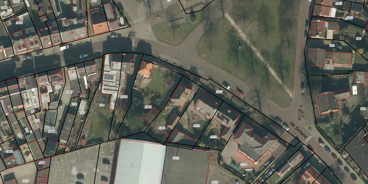 De Schans 99 is gelegen op kadastraal perceel TBG01T1361. Deze kadastrale aanduiding is uniek en wordt gebruikt door het Kadaster om eigendomsrechten en andere zakelijke rechten vast te leggen. Het perceel maakt onderdeel uit van de kadastrale gemeente Tilburg.