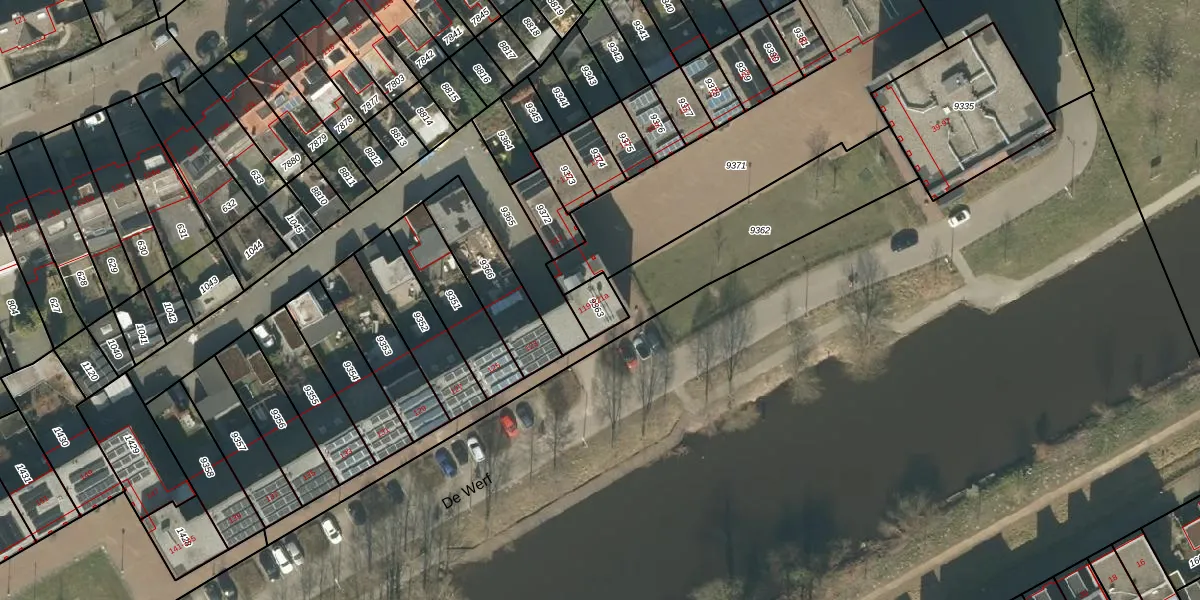 De Werf 121 is gelegen op kadastraal perceel TBG01B9363. Deze kadastrale aanduiding is uniek en wordt gebruikt door het Kadaster om eigendomsrechten en andere zakelijke rechten vast te leggen. Het perceel maakt onderdeel uit van de kadastrale gemeente Tilburg.