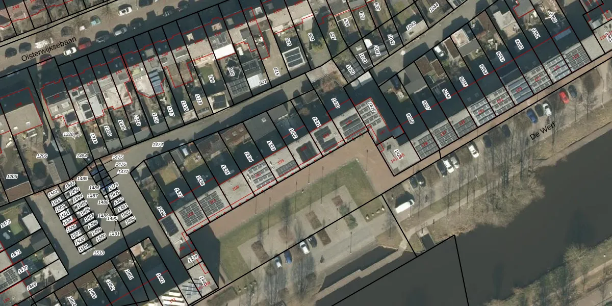 De Werf 153 is gelegen op kadastraal perceel TBG01X1432. Deze kadastrale aanduiding is uniek en wordt gebruikt door het Kadaster om eigendomsrechten en andere zakelijke rechten vast te leggen. Het perceel maakt onderdeel uit van de kadastrale gemeente Tilburg.