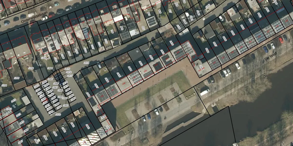 De Werf 155 is gelegen op kadastraal perceel TBG01X1433. Deze kadastrale aanduiding is uniek en wordt gebruikt door het Kadaster om eigendomsrechten en andere zakelijke rechten vast te leggen. Het perceel maakt onderdeel uit van de kadastrale gemeente Tilburg.