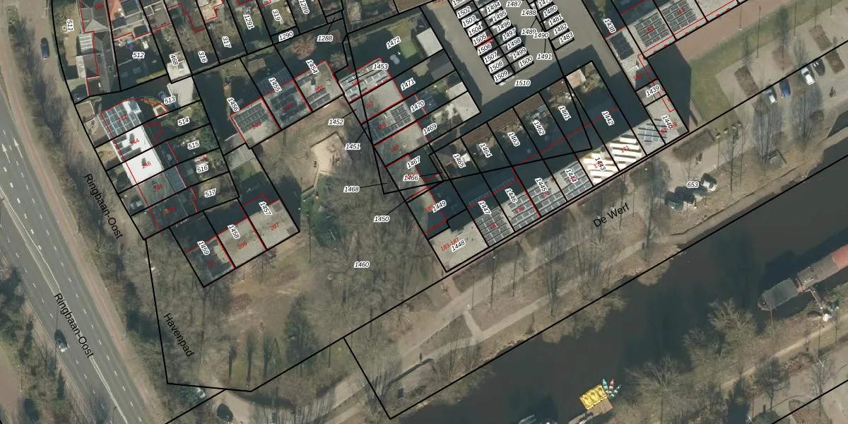 De Werf 189 is gelegen op kadastraal perceel TBG01X1449. Deze kadastrale aanduiding is uniek en wordt gebruikt door het Kadaster om eigendomsrechten en andere zakelijke rechten vast te leggen. Het perceel maakt onderdeel uit van de kadastrale gemeente Tilburg.