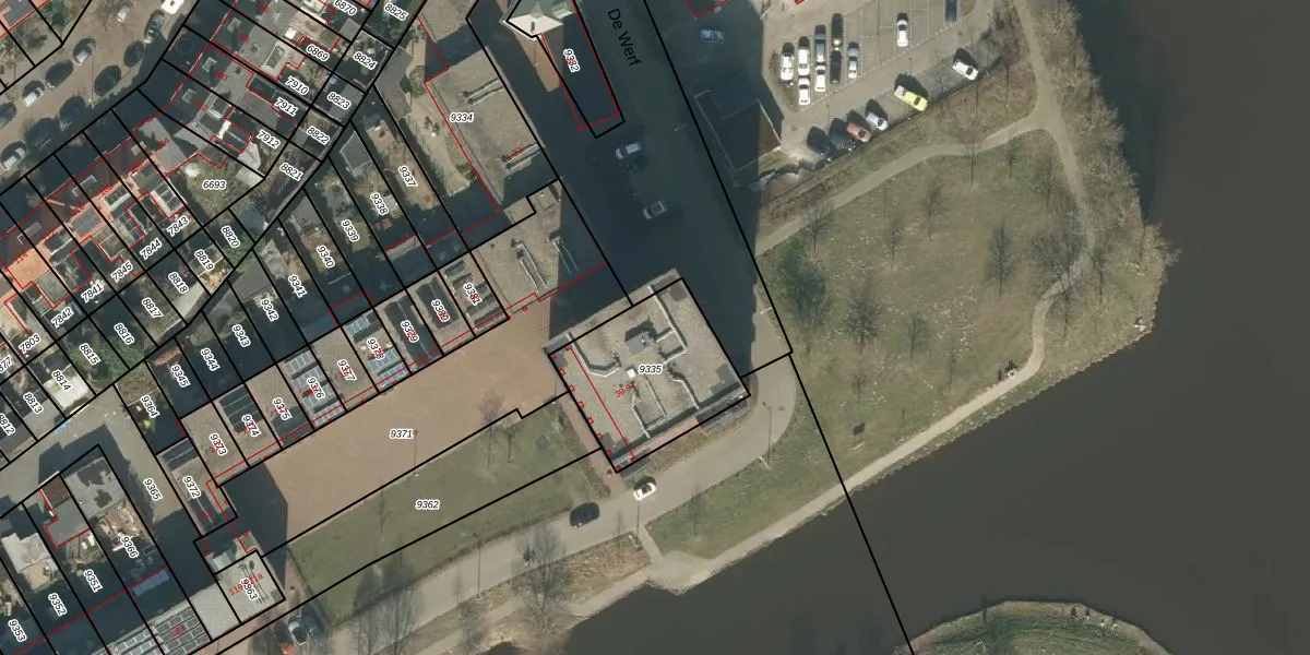 Het perceel waarop De Werf 75 staat heeft een oppervlakte van 490 m². Dit is een groot perceel. De perceeloppervlakte wordt geregistreerd door het Kadaster. Gedetailleerde informatie over de maten van dit perceel kunt u vinden in het rapport Kadastrale kaart met maatvoering van De Werf 75.
