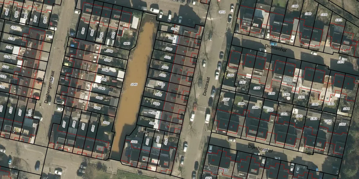 Gebruik de zoekbalk of klik op een perceel voor informatie over de adressen binnen dit perceel.
