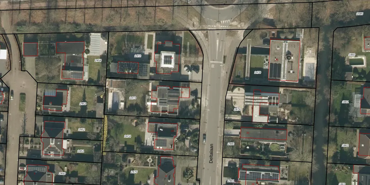 Het perceel waarop Deltalaan 12 staat heeft een oppervlakte van 1040 m². Dit is een zeer groot perceel. De perceeloppervlakte wordt geregistreerd door het Kadaster. Gedetailleerde informatie over de maten van dit perceel kunt u vinden in het rapport Kadastrale kaart met maatvoering van Deltalaan 12.