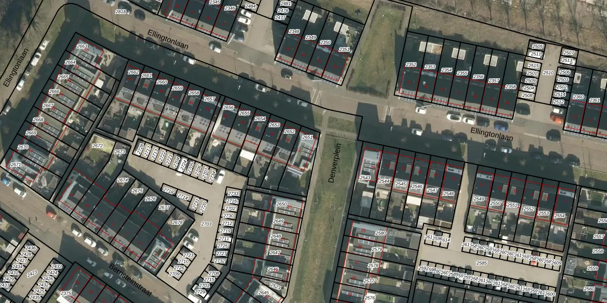 Het perceel waarop Denverplein 21 staat heeft een oppervlakte van 184 m². Dit is een middelgroot perceel. De perceeloppervlakte wordt geregistreerd door het Kadaster. Gedetailleerde informatie over de maten van dit perceel kunt u vinden in het rapport Kadastrale kaart met maatvoering van Denverplein 21.