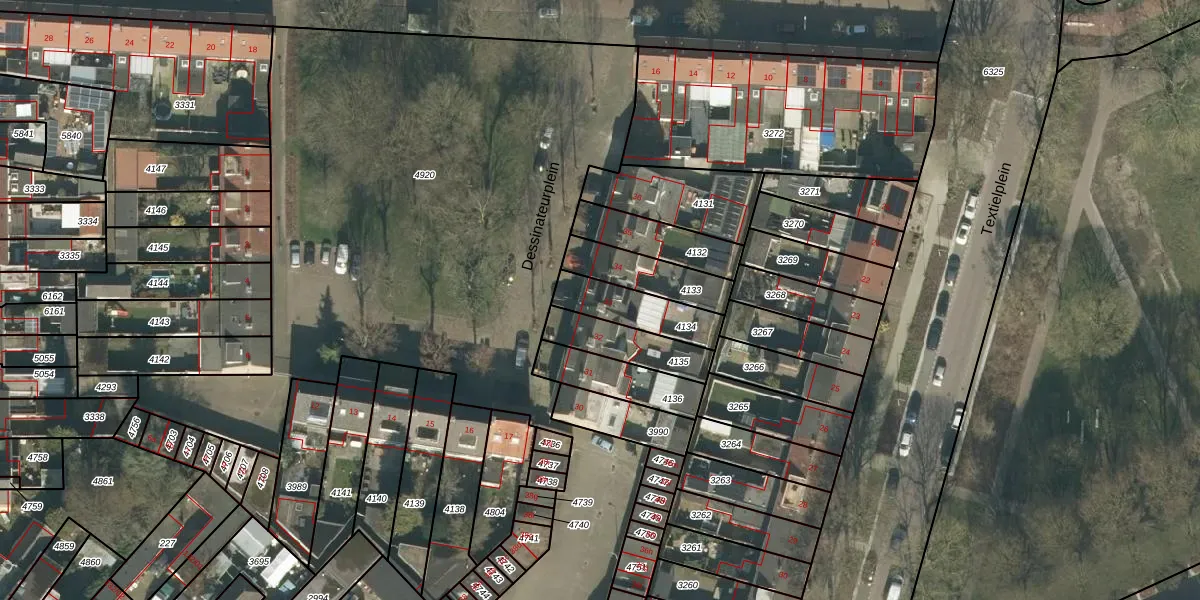 Dessinateurplein 33 is gelegen op kadastraal perceel TBG01O4134. Deze kadastrale aanduiding is uniek en wordt gebruikt door het Kadaster om eigendomsrechten en andere zakelijke rechten vast te leggen. Het perceel maakt onderdeel uit van de kadastrale gemeente Tilburg.
