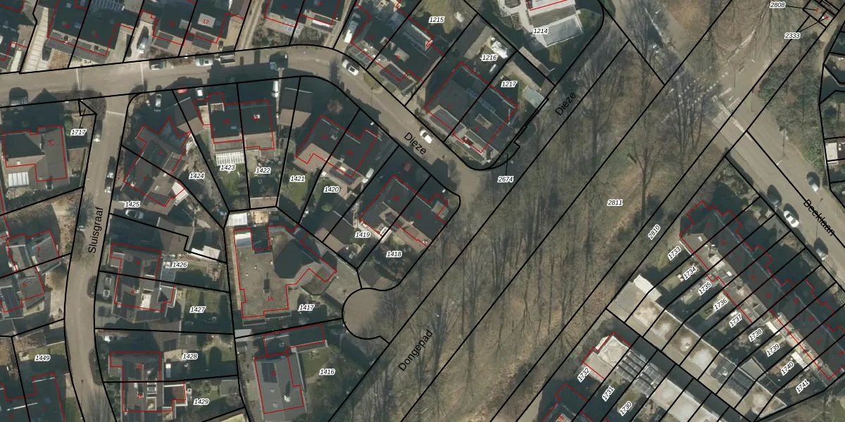 Dieze 16 is gelegen op kadastraal perceel TBG01AB1418. Deze kadastrale aanduiding is uniek en wordt gebruikt door het Kadaster om eigendomsrechten en andere zakelijke rechten vast te leggen. Het perceel maakt onderdeel uit van de kadastrale gemeente Tilburg.