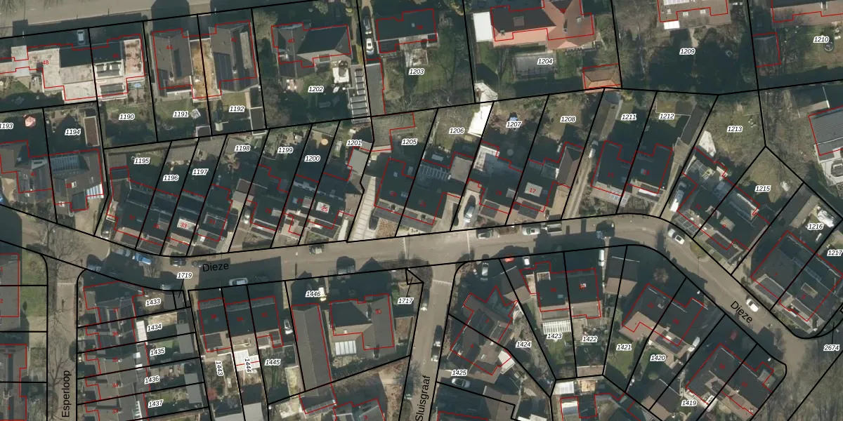 Dieze 21 is gelegen op kadastraal perceel TBG01AB1206. Deze kadastrale aanduiding is uniek en wordt gebruikt door het Kadaster om eigendomsrechten en andere zakelijke rechten vast te leggen. Het perceel maakt onderdeel uit van de kadastrale gemeente Tilburg.