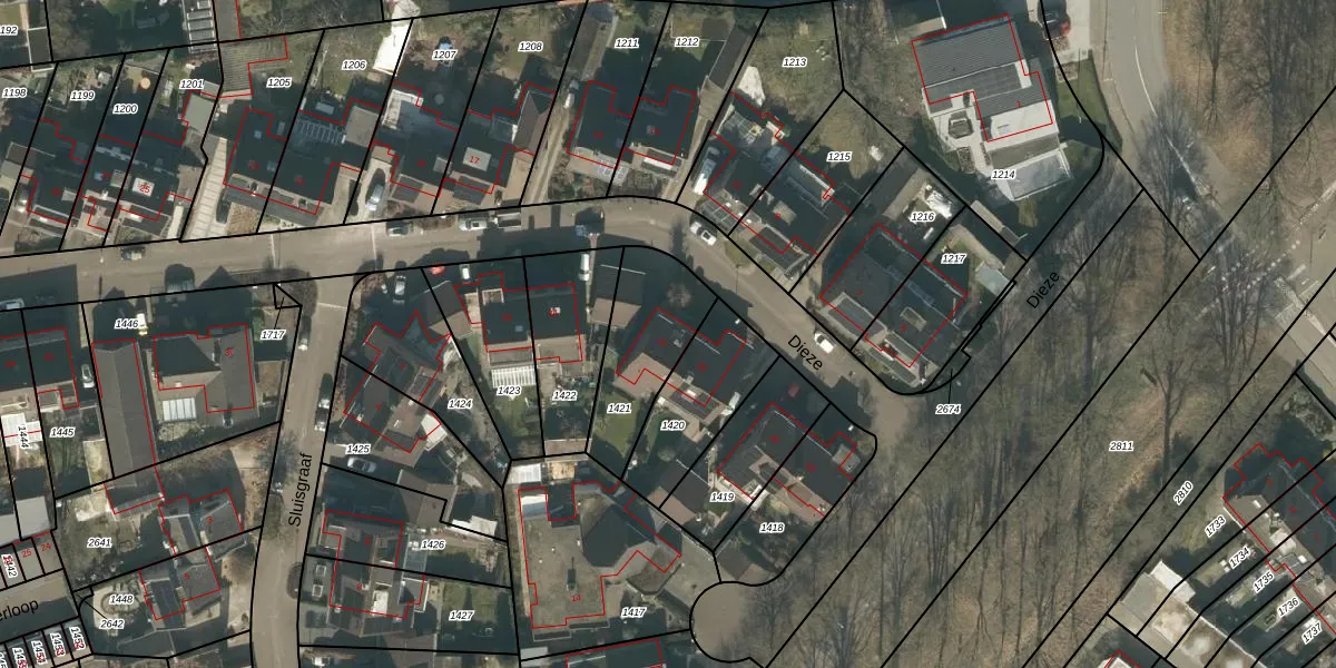 Het perceel waarop Dieze 22 staat heeft een oppervlakte van 343 m². Dit is een groot perceel. De perceeloppervlakte wordt geregistreerd door het Kadaster. Gedetailleerde informatie over de maten van dit perceel kunt u vinden in het rapport Kadastrale kaart met maatvoering van Dieze 22.