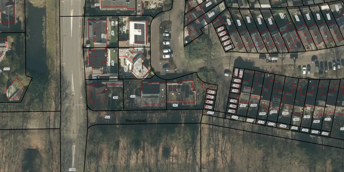 Het perceel waarop Dieze 96 staat heeft een oppervlakte van 445 m². Dit is een groot perceel. De perceeloppervlakte wordt geregistreerd door het Kadaster. Gedetailleerde informatie over de maten van dit perceel kunt u vinden in het rapport Kadastrale kaart met maatvoering van Dieze 96.