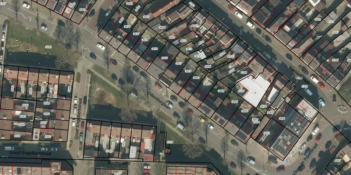 Dillenburglaan 19 is gelegen op kadastraal perceel TBG01O3918. Deze kadastrale aanduiding is uniek en wordt gebruikt door het Kadaster om eigendomsrechten en andere zakelijke rechten vast te leggen. Het perceel maakt onderdeel uit van de kadastrale gemeente Tilburg.