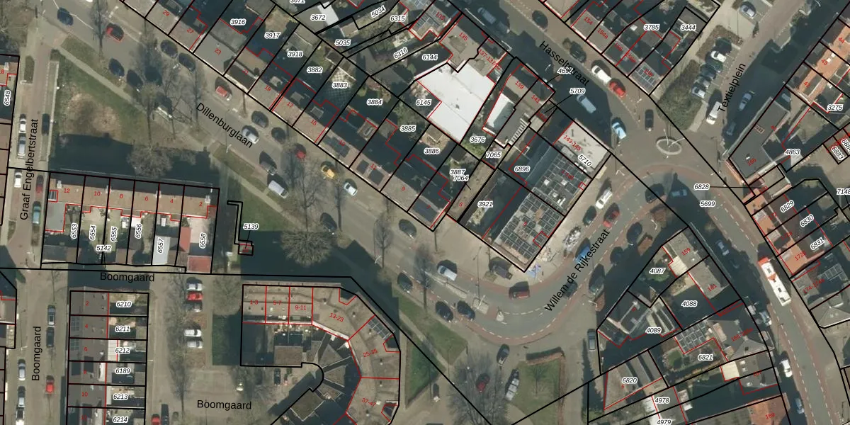 Dillenburglaan 7 is gelegen op kadastraal perceel TBG01O3887. Deze kadastrale aanduiding is uniek en wordt gebruikt door het Kadaster om eigendomsrechten en andere zakelijke rechten vast te leggen. Het perceel maakt onderdeel uit van de kadastrale gemeente Tilburg.