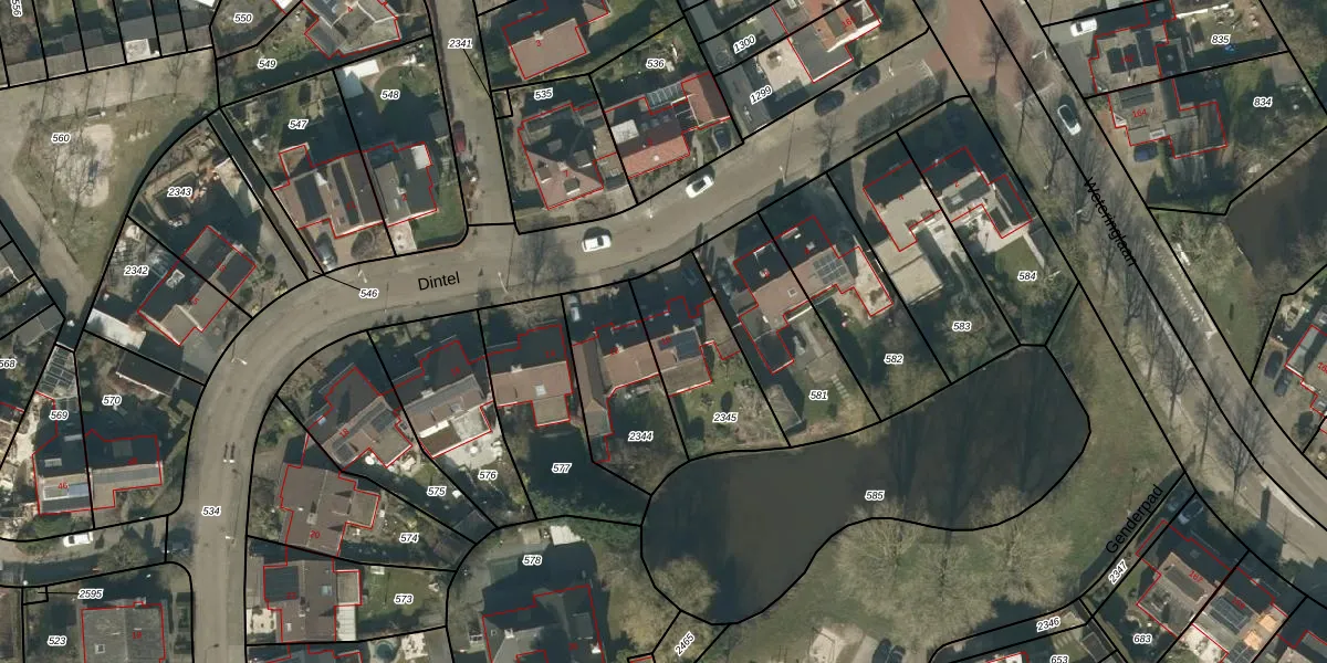 Het perceel waarop Dintel 10 staat heeft een oppervlakte van 384 m². Dit is een groot perceel. De perceeloppervlakte wordt geregistreerd door het Kadaster. Gedetailleerde informatie over de maten van dit perceel kunt u vinden in het rapport Kadastrale kaart met maatvoering van Dintel 10.