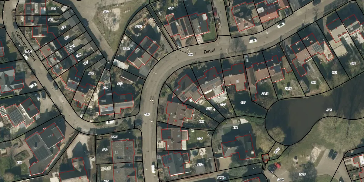Het perceel waarop Dintel 18 staat heeft een oppervlakte van 390 m². Dit is een groot perceel. De perceeloppervlakte wordt geregistreerd door het Kadaster. Gedetailleerde informatie over de maten van dit perceel kunt u vinden in het rapport Kadastrale kaart met maatvoering van Dintel 18.