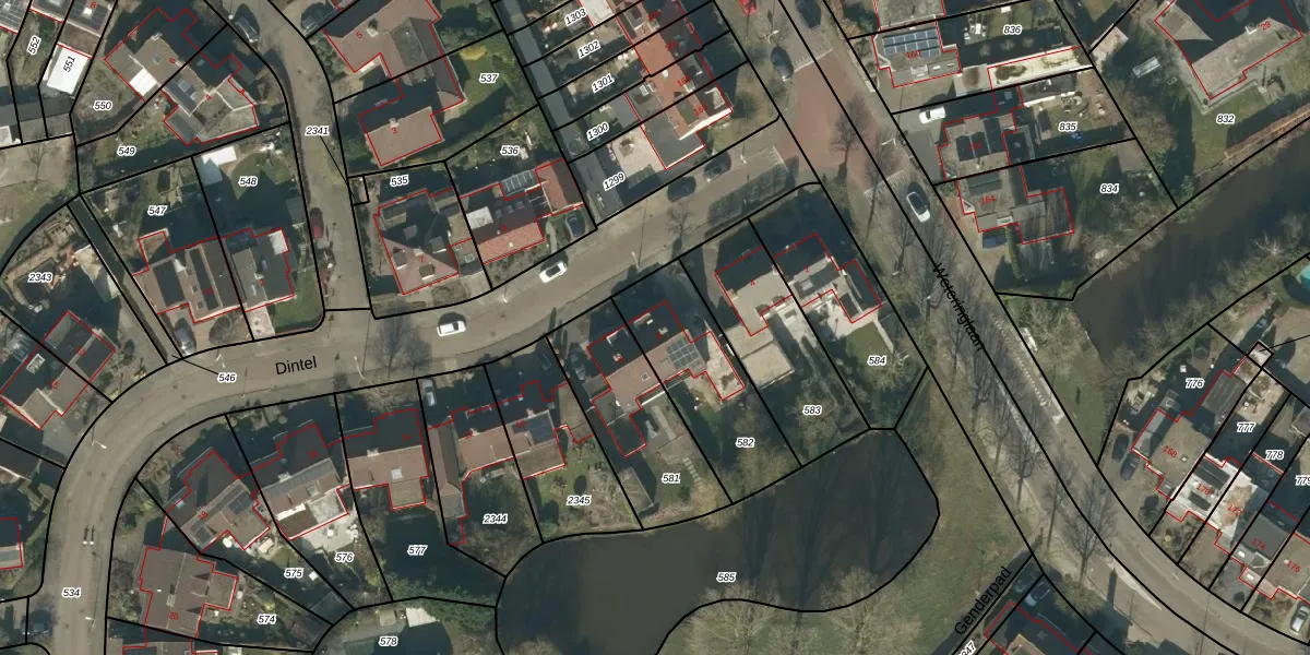 Het perceel waarop Dintel 6 staat heeft een oppervlakte van 443 m². Dit is een groot perceel. De perceeloppervlakte wordt geregistreerd door het Kadaster. Gedetailleerde informatie over de maten van dit perceel kunt u vinden in het rapport Kadastrale kaart met maatvoering van Dintel 6.