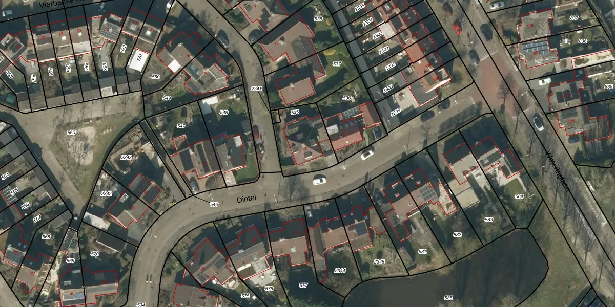 Het perceel waarop Dintel 7 staat heeft een oppervlakte van 358 m². Dit is een groot perceel. De perceeloppervlakte wordt geregistreerd door het Kadaster. Gedetailleerde informatie over de maten van dit perceel kunt u vinden in het rapport Kadastrale kaart met maatvoering van Dintel 7.