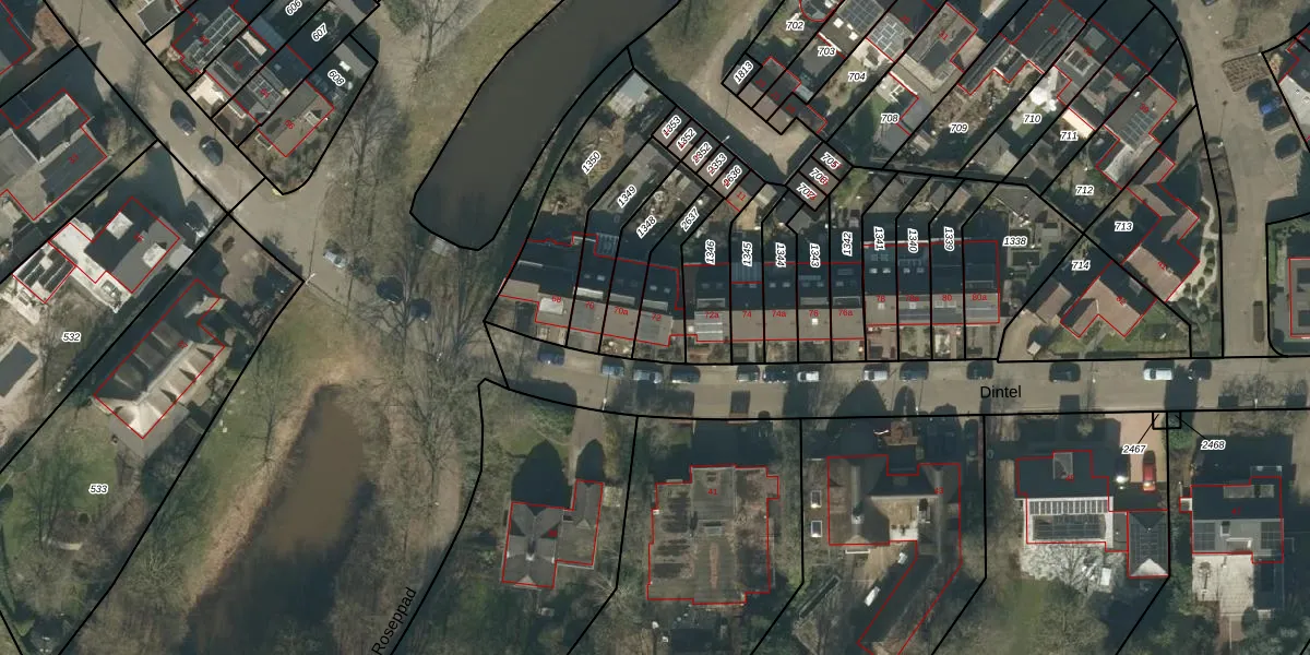 Het perceel waarop Dintel 72 staat heeft een oppervlakte van 148 m². Dit is een middelgroot perceel. De perceeloppervlakte wordt geregistreerd door het Kadaster. Gedetailleerde informatie over de maten van dit perceel kunt u vinden in het rapport Kadastrale kaart met maatvoering van Dintel 72.