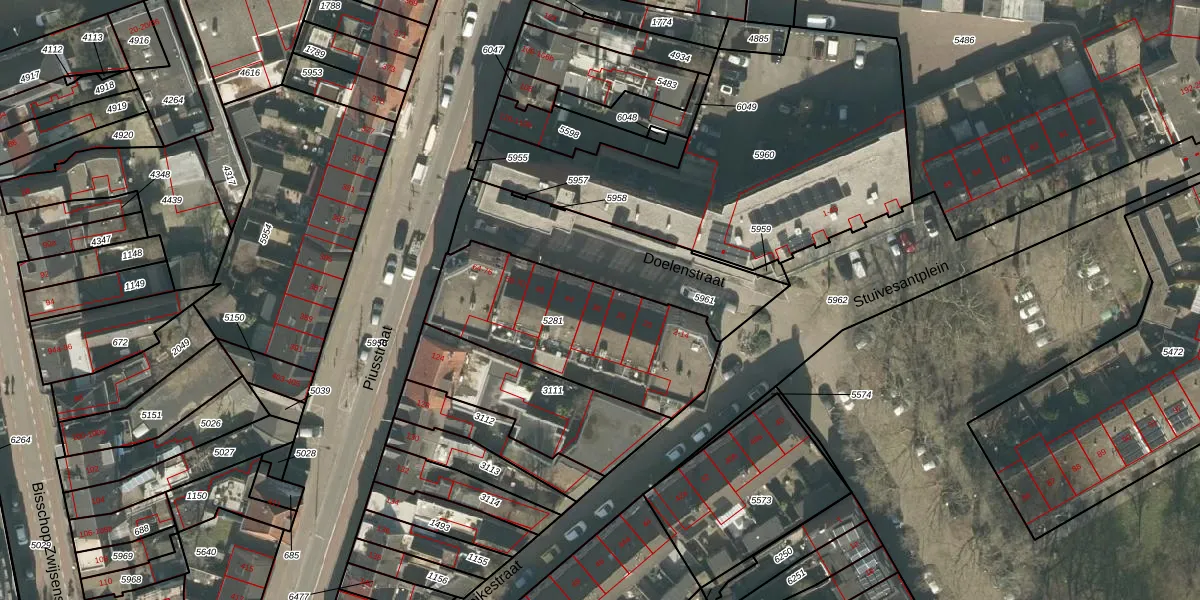 Doelenstraat 36 is gelegen op kadastraal perceel TBG01R5281. Deze kadastrale aanduiding is uniek en wordt gebruikt door het Kadaster om eigendomsrechten en andere zakelijke rechten vast te leggen. Het perceel maakt onderdeel uit van de kadastrale gemeente Tilburg.