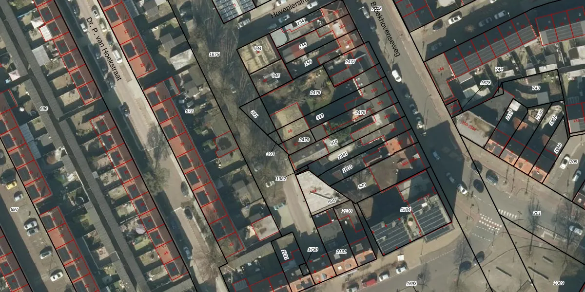 Gebruik de zoekbalk of klik op een perceel voor informatie over de adressen binnen dit perceel.