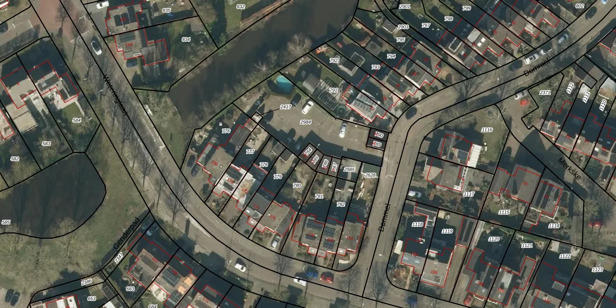 Het perceel waarop Dommel 14 staat heeft een oppervlakte van 19 m². Dit is een klein perceel. De perceeloppervlakte wordt geregistreerd door het Kadaster. Gedetailleerde informatie over de maten van dit perceel kunt u vinden in het rapport Kadastrale kaart met maatvoering van Dommel 14.