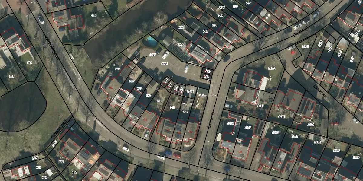 Het perceel waarop Dommel 8 staat heeft een oppervlakte van 19 m². Dit is een klein perceel. De perceeloppervlakte wordt geregistreerd door het Kadaster. Gedetailleerde informatie over de maten van dit perceel kunt u vinden in het rapport Kadastrale kaart met maatvoering van Dommel 8.