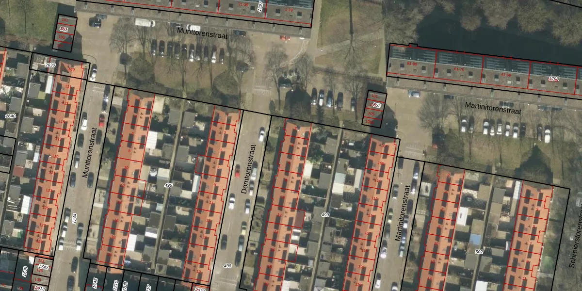 Het perceel waarop Domtorenstraat 4 staat heeft een oppervlakte van 2756 m². Dit is een zeer groot perceel. De perceeloppervlakte wordt geregistreerd door het Kadaster. Gedetailleerde informatie over de maten van dit perceel kunt u vinden in het rapport Kadastrale kaart met maatvoering van Domtorenstraat 4.